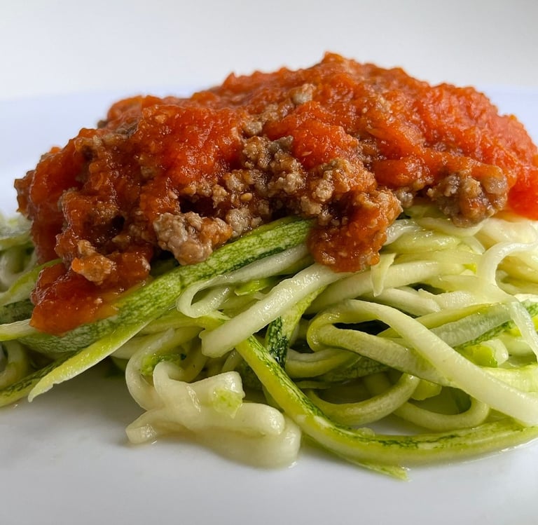 Delicioso espaguete de abobrinha salteado ao molho bolonhesa! Ótima pedida para quem busca uma opção low carb bem leve e nutritiva!